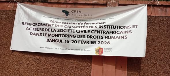 Le Centre d’Études Juridiques Africain (CEJA) a organisé, du 16 au 20 février 2026 à Bangui, une deuxième session de renforcement des capacités destinée aux institutions publiques et aux acteurs de la société civile centrafricaine engagés dans la défense des droits humains.